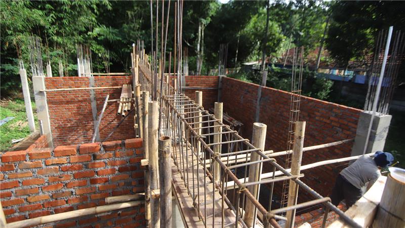 Saat ini, pembangunan ruang kelas permanen sudah berjalan 50%. Dindingnya sudah berdiri, namun dana yang ada belum cukup untuk menyelesaikannya.