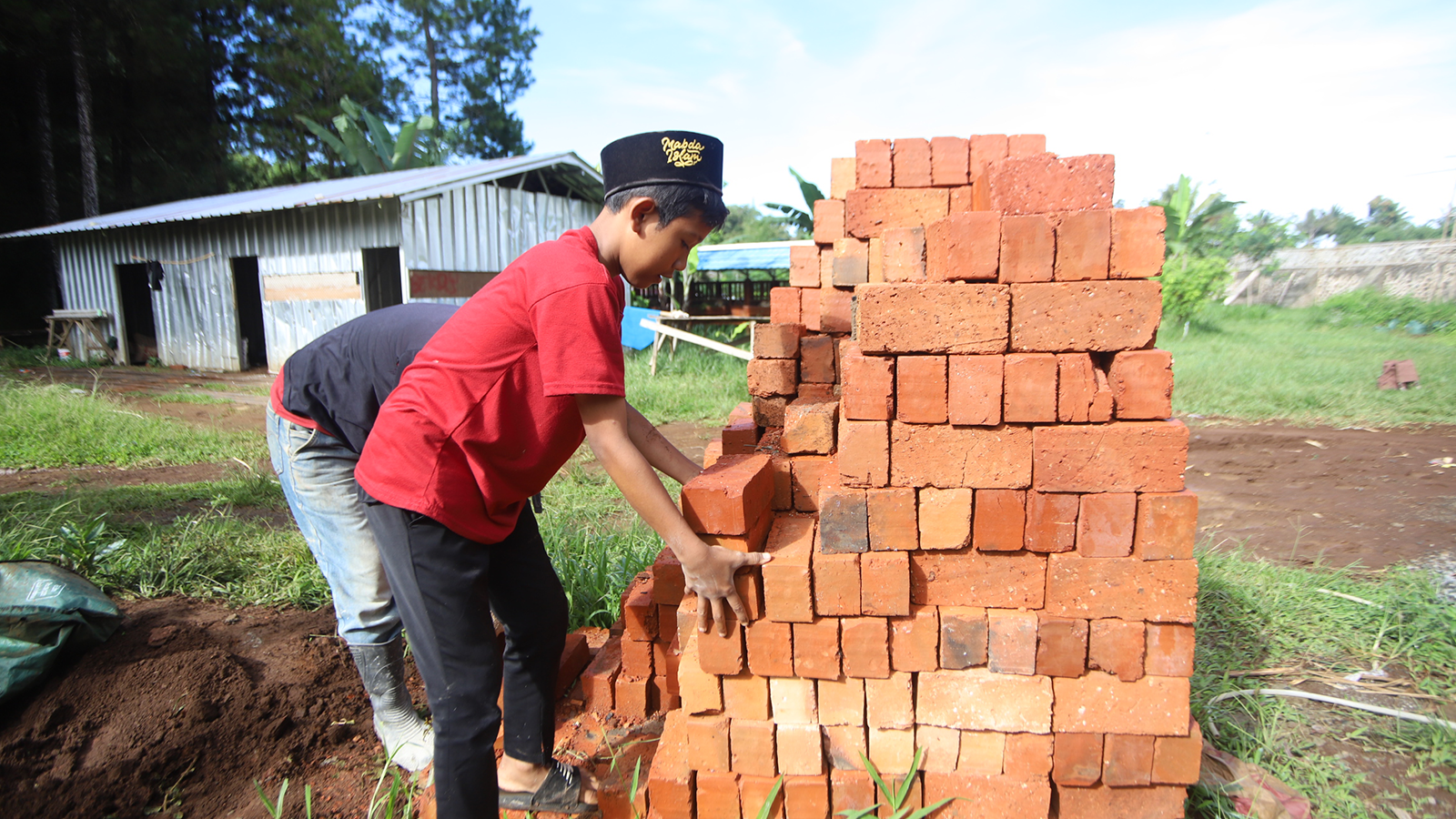 “Selama ini, santri dan guru ikut bergotong royong mengangkat batu, mencampur pasir, dan memasang bata. Berharap suatu hari bisa belajar di kelas yang layak, tambahnya.